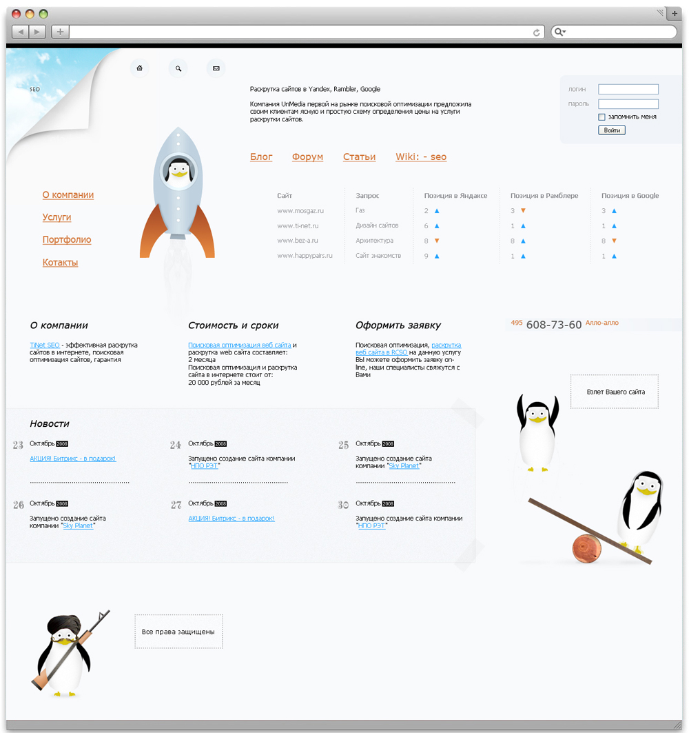 http://www.tinetseo.ru/ Четкое меню, создано для того, чтобы каждый клиент мог быстро сориентироваться в навигации сайта. Тематические картинки плюс корпоративные цвета помогут сделать дизайн сайта запоминающимся.